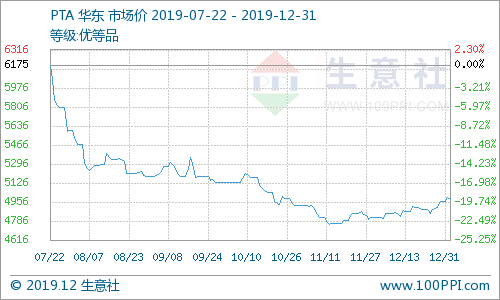 12月份国际原油价格收盘价格上涨,截止30日美国WTI原油期货市场价格报61.68美元/桶,布伦特原油期货价格报68.44美元/桶,原油收盘价格有所上涨,对于下游石化产品形成成本支撑作用,国内对二甲苯市场价格走势上涨。