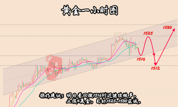 操作建议:明日看回撤1516附近继续做多,止损4美金,目标1525-1530区域。