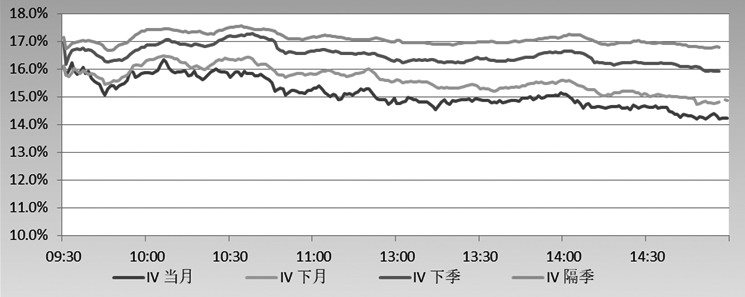 伴随标的50ETF高开振荡高走后回落,期权IV亦跳空高开后振荡回落,收盘IV与开盘IV相比平均回落超1.5个百分点,当前各月份IV值分别收于14.2%、14.8%、15.9%、16.8%,呈现近低远高的“升水期限结构”。与实现波动率相比,隐含波动率处于相对合理水平。