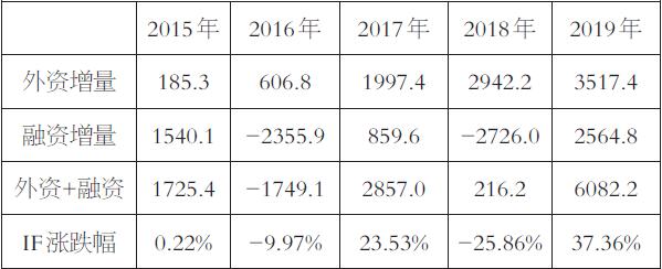 表为外资、杠杆资金与IF涨跌的关系