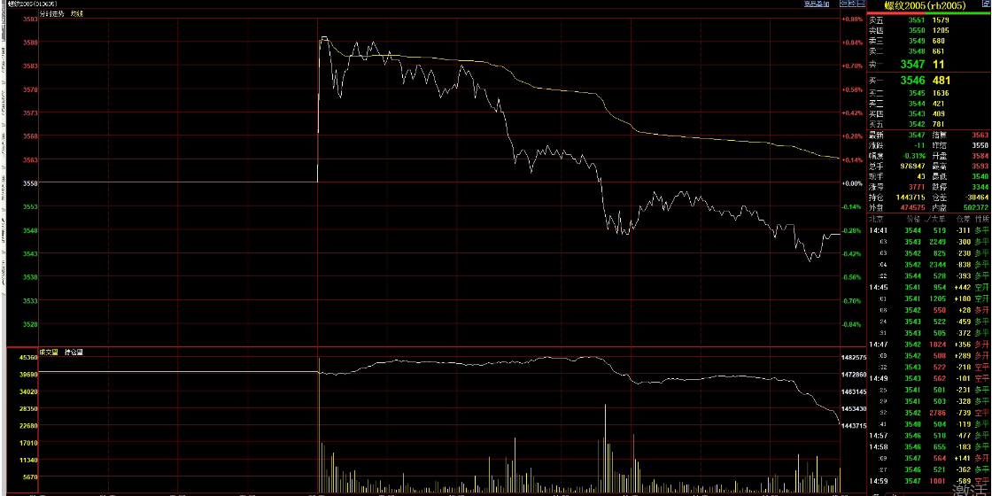 (4)五矿持仓多单53768手--减仓多单3146手---持空单30742手--增仓空单3336手--持净多单23026手---减持净多单6482手.这是盘初冲高时平多加空收割韭菜操作