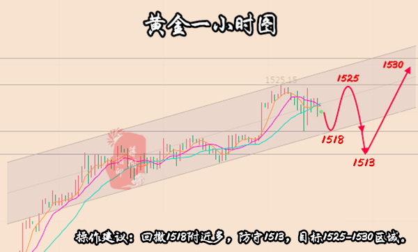 操作建议:回撤1518附近多,防守1513,目标1525-1530区域。