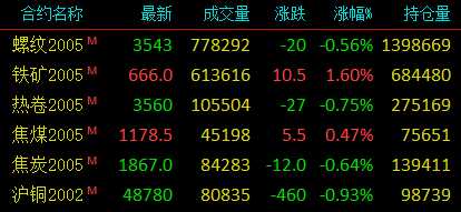 ◎螺纹钢跌0.56%、热卷跌0.75%