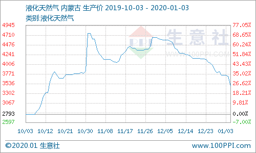 产品方面:据生意社数据监测,截止01月03日,内蒙古鄂尔多斯市星星能源有限公司LNG价格为3490元/吨,内蒙古鄂托克前旗时泰天然气有限公司LNG价格为3470元/吨。新疆庆华能源集团有限公司LNG价格为3400元/吨,陕西绿源天然气有限公司子洲LNG工厂LNG价格为3650元/吨,新疆广汇淖毛湖(兰州以东)LNG价格为2600元/吨左右,山西沁水新奥LNG价格为3600元/吨,达州汇鑫能源LNG价格为3800元/吨,陕西众源绿能天然气有限责任公司LNG价格为3500元/吨,液价涨跌互现,各地液价涨跌互现,整体下行。
