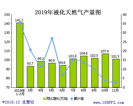 据悉2019年1-11月全国液化天然气产量进行监测统计显示:2019年11月全国液化天然气产量101.5万吨,同比增长3%,2019年1-11月全国液化天然气产量为1057.3万吨,累计增长15.1%。