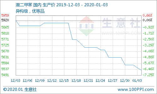 原标题:生意社:本周异构二甲苯平稳震荡 小幅下跌0.89%(12月27日-1月3日)