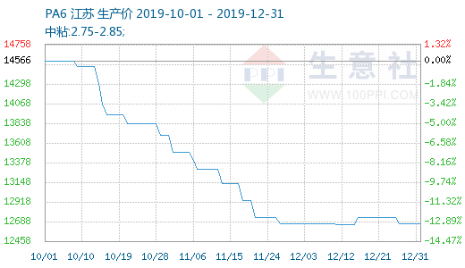 据生意社大宗榜数据显示,十二月国内PA6市场行情较稳,各牌号报价涨跌幅度较小。贸易商对中粘2.75-2.85的主流报盘价在12666.67元/吨左右,较月初水平持平。