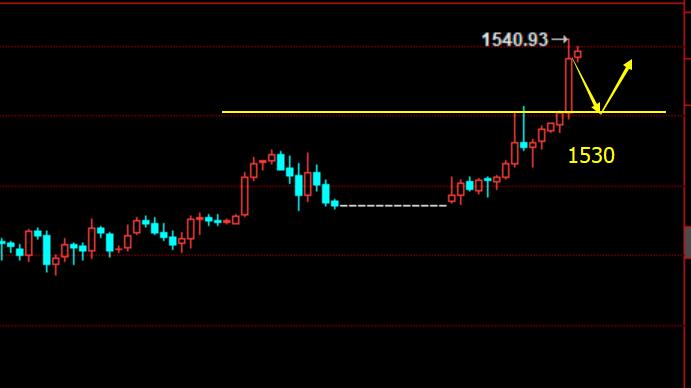 策略一:1530-1533附近多,止损1528,目标1540-1550附近