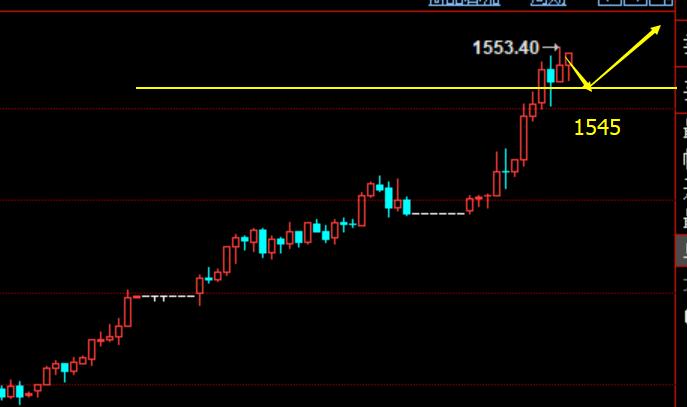 策略一:1545附近多,止损1541,目标1555-1560附近