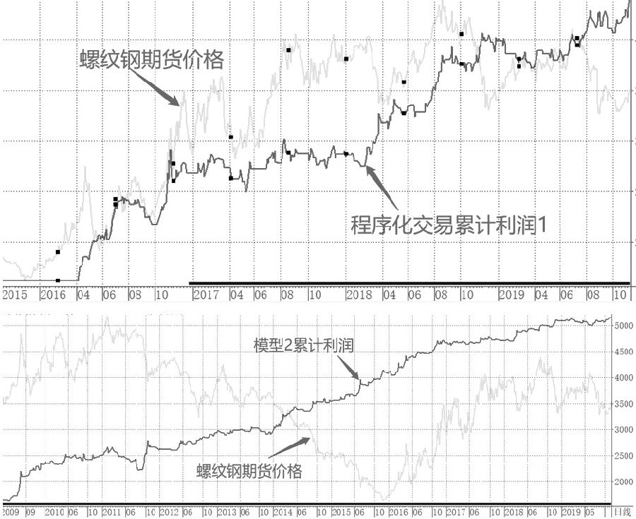 图为螺纹钢基本面因子交易模型业绩曲线1、2