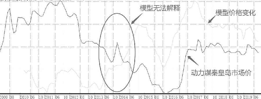 圈标的那一段时间,模型无法解释现货实际价格走势,模型价格变化与实际价格走势严重背离,但如果把模型这一段由向上改为向下,就会发现模型整体的价格变化与实际价格变化极为相似。