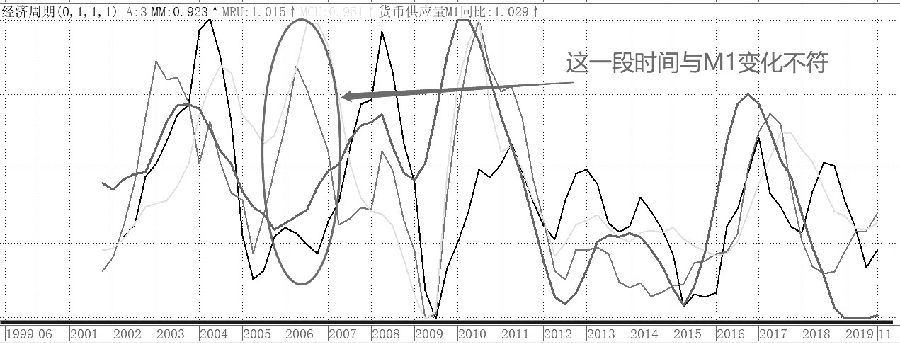 如下图所示,商品价格同比波动较M1同比稍微滞后,但步调基本保持一致,除了图中圈标的那一段时间,橡胶和铜的价格波动与M1出入较大。这可能是外部原因造成的,因为这两种商品生产所需的原材料都严重依赖进口。另外,橡胶既是工业原材料,同时又是农产品,所以橡胶的周期可能与其农产品特性有关。