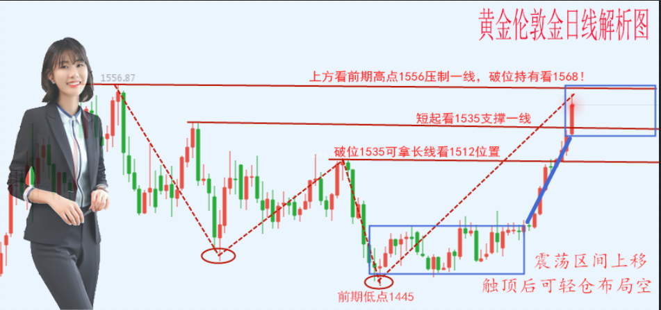 1,建议下方回落1535-1537分批做多,止损1532下方,目标1543-1545