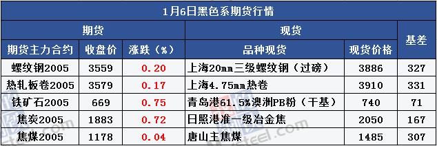 ◎建材成交量:1月6日,Mysteel调研全国237家贸易商建材日成交量为 15万吨,较上一交易日减少0.61万吨。