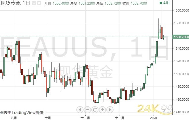 周三美市盘中现货黄金最低一度触及1551.87美元/盎司,金价收于1556.20美元/盎司。周三亚市早盘金价曾飙升至1600美元/盎司大关,最高升至1611.20美元/盎司。