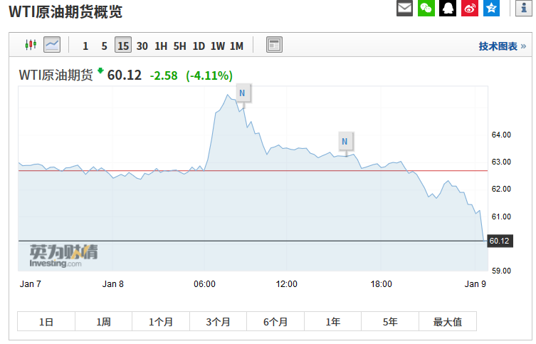 WTI原油期货跌4.11%,报60.12美元/桶;伦敦布伦特原油期货跌幅3.78%,报65.69美元/桶。