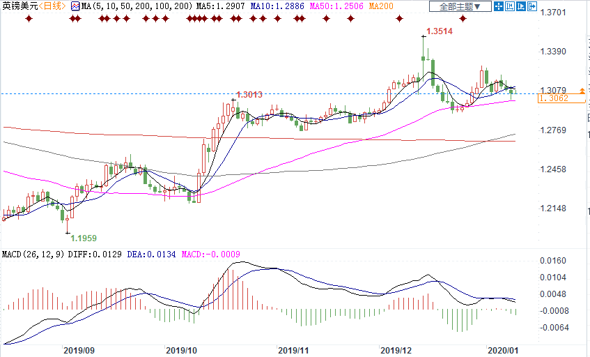 从走势图上看,1月10日英镑的确从1.3013低点出现反弹,目前交投于1.3064附近。