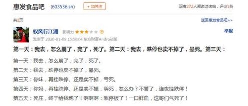 惠发食品近6个交易日出现5天跌停,投资者也是悲喜交加:(点击进入惠发食品吧 )