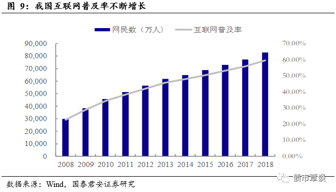用户规模持续增长,夯实互联网金融发展基础。根据中国互联网络信息中心数据,截至2018年末,我国网民规模达8.29亿,普及率达59.6%,其中我国手机网民规模达8.17亿,网民通过手机接入互联网的比例高达98.6%。2018年末,我国互联网理财使用率达到18.3%,较上年提高1.6个百分点,我国互联网理财用户规模逐年增长,网民理财意识逐渐得到培养。