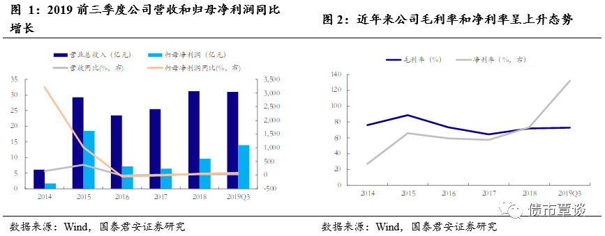 公司是国内领先的互联网金融服务平台综合运营商。公司主营业务涵盖证券、金融电子商务服务、金融数据服务及互联网广告服务等。2019年前三季度,公司实现营业收入30.97亿元,同比增长30.19%,归母净利润13.95亿元,同比增长74.13%。近年来公司毛利率和净利率均呈上升态势,2019年前三季度综合毛利率和净利率分别为72.69%和131.67%。