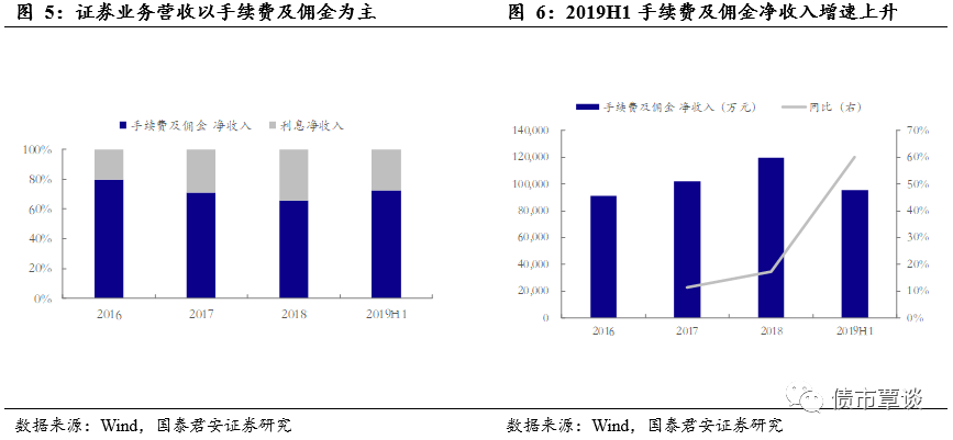 证券业务盈利水平逐年上升。从证券业务盈利能力来看,2016-2019H1公司营业利润分别为40,004万元、67,691万元、73,085万元和78,610万元,营业利润逐年上涨,反映公司证券业务盈利水平增长良好,且2019年上半年所实现的营业利润已经超过了2018年全年的营业利润,因此预期公司2019年的证券业务营收有望实现大幅增长。