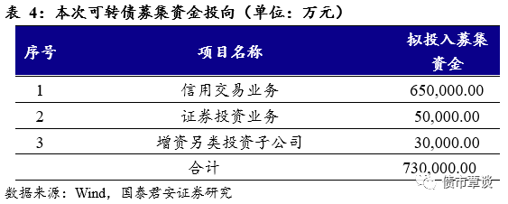 公司本次发行可转债拟募集资金总额不超过73亿元,将用于补充公司全资子公司东方财富证券的营运资金,支持其业务发展,增强其抗风险能力。