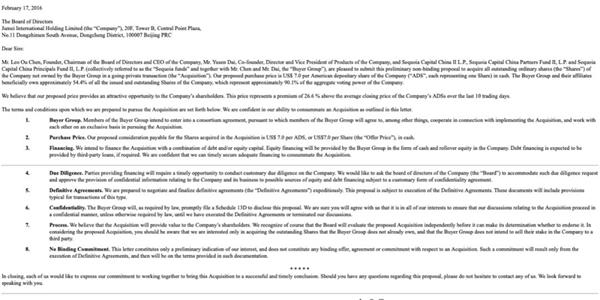 不过聚美优品提醒投资人,董事会刚刚收到建议书,并未就建议书及拟议交易作出任何决定。无法保证买方团将向公司做出任何最终报价,公司和买方团之间将达成任何与该提议相关的最终协议,或提议的交易或任何其他类似交易将被批准或完成。