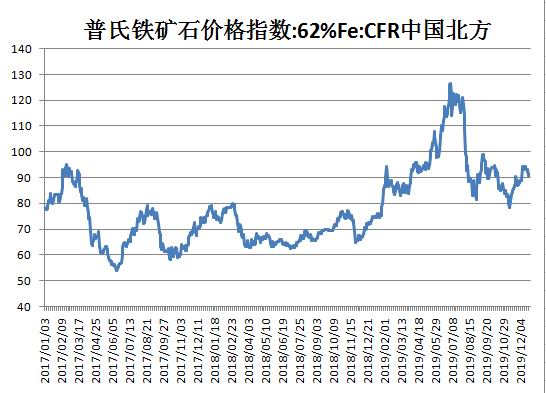 2019年铁矿石现货市场价格在多重因素影响下,整体呈现冲高回落走势。首先,年初受钢厂节前主动补库支撑矿价走高;其次,在巴西淡水河谷Mina Feijão矿区尾矿坝决堤事故及澳洲飓风影响铁路运输,导致两拓发货量下滑的持续影响下,矿价于7月3日触及126.35美元/吨高位;其三,7月中旬后随着巴西部分矿山恢复生产及澳洲恢复运力,铁矿石供应量逐渐提升,同时贸易摩擦紧张局面升温,铁矿石期现货价格快速回落,于11月11日跌至78.45元/吨,较年内高点回落近40%。最后,11月中旬至今在钢价反弹及节前钢厂存补库预期的支撑下,矿价震荡上行。