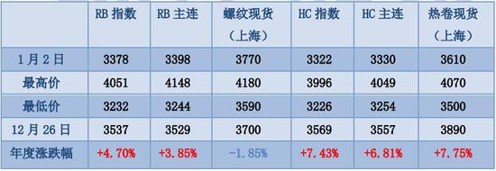 2019年钢材市场供需两旺,行情走势则跌宕起伏。其中一季度钢价先扬后抑,春节前受益于央行一系列宽松货币政策令市场悲观情绪得以缓解,另外主产区因大气污染钢厂响应减限产政策,钢价强势走高,但进入3月由于终端需求释放缓慢及库存达到峰值,钢价出现快速回落。二季度螺纹钢期货指数则陷入3600-3900区间内宽幅震荡,随着终端需求逐步释放,库存连续数周下降,钢价重心才逐步上移,但5月份南方雨季及贸易摩擦升温令钢价再度承压下行,直至6月中旬河北环保加压钢厂限产政策频出,钢价重获支撑。7-10月份钢价整体弱势运行,虽处消费旺季,但贸易摩擦持续升温影响市场情绪,同时钢材产量保持增长趋势。而11-12月份的需求超乎市场普遍预期,造成价格在淡季出现修复性反弹,特别是热轧卷板库存处在历史低位,期现货价格走势坚挺。