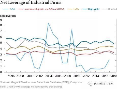 此外,最近的学术研究成果显示美国的保险公司对被降级到高收益债级别的公司债“一抛了之”。因此,已经因发行人的信用评级展望出现恶化而遭遇价格贬值的公司债会由于相关的出清压力而承受更大的价格下跌压力。在当前的美国公司债市场中,因BAA级公司债的未到期余额以及投资级公司债整体的净财务杠杆比率居高不下所导致的大批美国公司债有可能被降级的情况引发了市场对美国金融稳定性的担忧。
