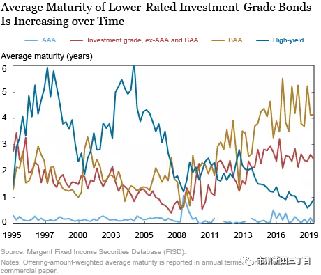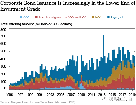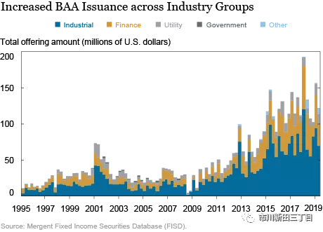 截止到2018年末美国公司债市场的未偿余额为9.2万亿美元,规模与美国按揭质押债券市场不相上下。我们在本文中的观点是,尽管在2008年金融危机后美国公司债市场的大部分发行量来自于投资级债券,但BAA级公司债的大量发行会引发市场对美国金融稳定性的担忧。此外,AAA级公司债和BAA级公司债在到期期限和企业特性等方面的不匹配情况导致BAA级和AAA级公司债之间的信用利差在衡量投资者对美国公司债信用风险的好恶程度方面不再有效地发挥晴雨表的作用。