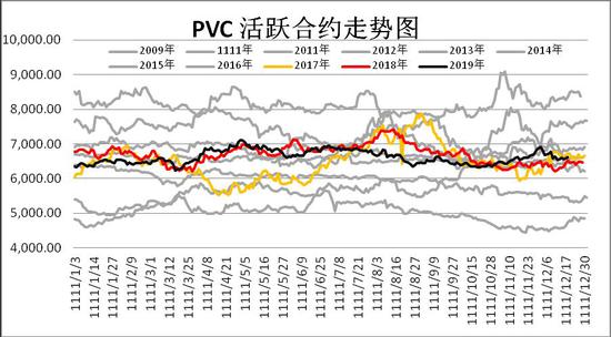 从历年的价格走势来看,2019年国内PVC的价格波动区间与往年相比较为狭小,总体维持在历年来的中位区域运行,价格呈宽幅震荡格局。2019年国际经济形势复杂,国际贸易极大的不确定性及国内外装置扩能幅度大幅提升的影响,期货价格一直呈现区间震荡格局。预计进入2020年后,由于国内外仍有大量的PVC新增产能有投产计划,预计仍将对价格形成较大的压制。