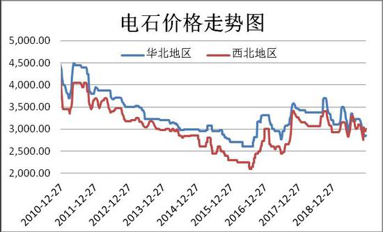进入2012年,电石的价格总体呈现一个区间震荡,重心下移的格局。进入12月份之后,虽然价格有所止跌,仍处于区间下方。数据显示:截止2019年12月20日,华北电石价格报2860元,环比上涨了20元,涨幅0.7%;同比则仍下跌了340元,跌幅10.63%。西北电石报3000元,环比回升了50元,升幅1.68%。同比也上升了75元,升幅2.56%。这主要是受到环保检查等因素的影响,企业降负生产所致。考虑到环保是一个长期的过程,预计进入2020年后,电石的价格仍将维持一下区间震荡,筑底反弹的格局。