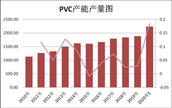 进入2020年之后,由于仍将有较多的新增产能投产,预计产量仍会有一个较大幅度的上升。保守估算,如果按照开工率为75%(近几年来的低位水平)来计算,则产量也将达到2233.5万吨,产量增幅达18.49%。由此可见2020年PVC供应仍将保持充足。