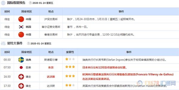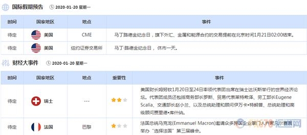 需要提醒的是,周一恰逢马丁路德金纪念日,美国股市休市一天,CME旗下外汇、金属和能源合约的交易提前在北京时间1月21日02:00结束,预计周一纽约时段的交投会比较清淡。