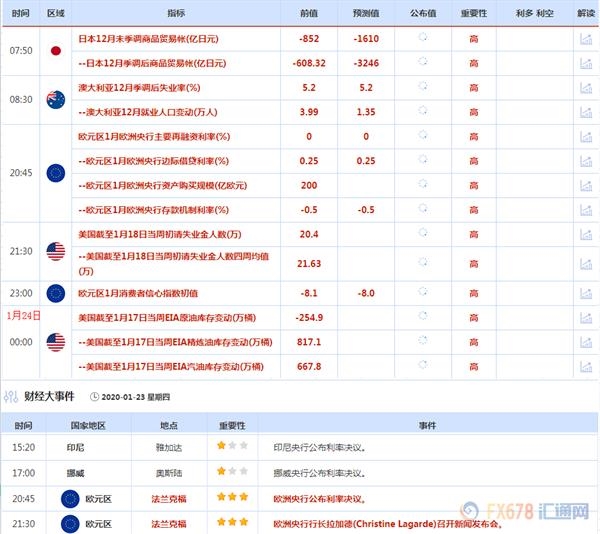 需要提醒的是,原定于每周三出炉的美国EIA原油库存等一系列数据,因为周一美国马丁·路德·金纪念日假期,延迟一个交易日至北京时间1月24日00:00公布。