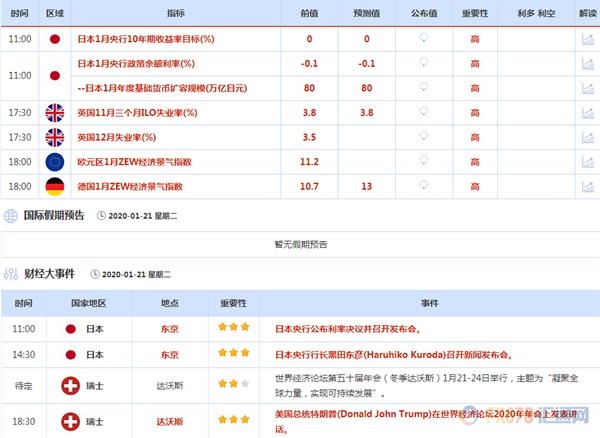 周二(1月21日)关键词:日本央行利率决议、达沃斯世界经济论坛年会、特朗普讲话