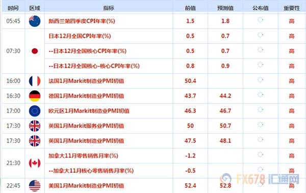 周五市场比较关注的将是欧元区1月Markit制造业PMI初值和美国1月Markit制造业PMI初值,当然,对于德国1月制造业PMI数据也需要予以留意。