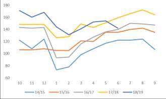 与豆棕表现出较明显不同特征的是今年菜油行情走势相对独立,主要与中加贸易摩擦所导致的进口受阻有关系。因近年来中国国产菜籽种植持续萎缩,据了解,今年国产菜籽种植量整体继续萎缩,自2015年来,国家逐步开启临储菜油销售,其间,15年国家预计销售临储菜油20万吨,16年全年共销菜油390万吨,17年再度销售90万吨临储菜油,至18年基本已销售出清,近年6月期间继续拍卖余下临储菜油约20万吨,菜油已基本完成市场化转型,储备逐步清空加之菜籽接连减产这也使得国产浓香型菜籽油更加稀缺。