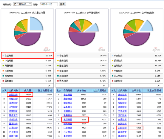 以1月20日三大油脂的成交持仓来看,豆油05合约,东证成交量158360手占比33.14%,远超第二名光大期货41775手的8.74%,而东证的多单和空单持仓总和仅为30697手,持仓总量仅占成交量的19%。