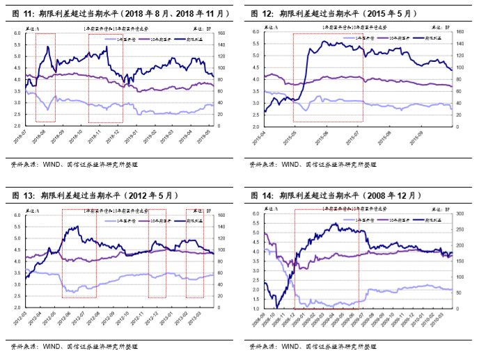 然后从这些时期后面期限利差走势来看,这轮期限利差走阔结束,期限利差开始缩窄,基本都伴随着短端利率的上行。