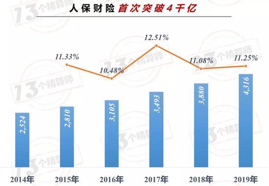 2019年,人保财险原保险保费收入首次突破4千亿元,连续五年实现双位数增长,从结果看,确实是交上了一份满意的答卷!