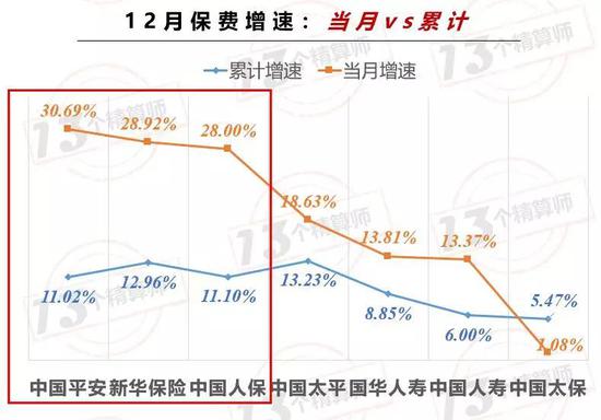 而从数据看,冲击收官的不止有平安寿险,还有新华保险和中国人保等多家寿险公司,当月保费增速都明显高于全年保费增速。