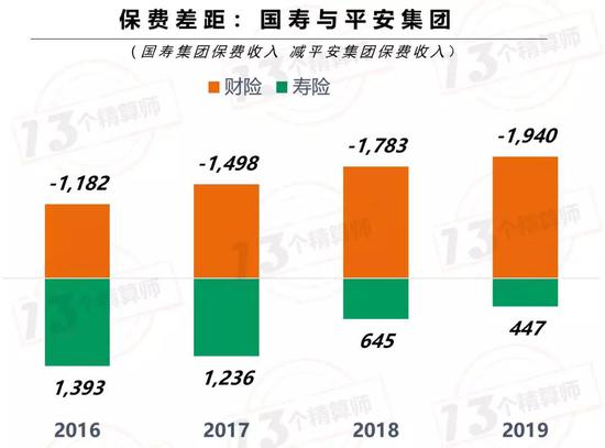 说明:上图为集团国寿集团的保费减去平安集团的保费(分成财险和寿险),故财险平安领先,数据为负。
