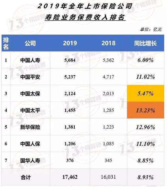 国寿集团的保费,包含中国人寿和国寿财产,国寿财、大地财产的保费为测算值~