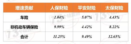 从上两图可以看到,车险的增速还是平安财险的增速最高为6.9%,为平安财险9.49%的整体增速贡献了5.07%。也就是说,平安财险的增速主要还是靠的车险。