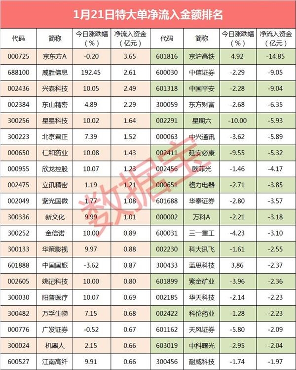 个股方面,两市有11只个股净流入资金超亿元,其中电子行业个股最为集中,占到7只。京东方A净流入3.65亿元居首。紧随其后是威胜信息和兴森科技,净流入分别为2.61亿元和2.49亿元。威胜信息今天在上海证券交易所首发上市,它成立于2004年,是我国最早专业从事智慧公用事业的厂商之一。此次科创板挂牌上市,威胜信息募集资金总额为6.89亿元,募资拟投向物联网感知层流体传感设备扩产及技改项目、物联网网络层产品扩产及技改项目、物联网综合研发中心项目以及补充营运资金等。