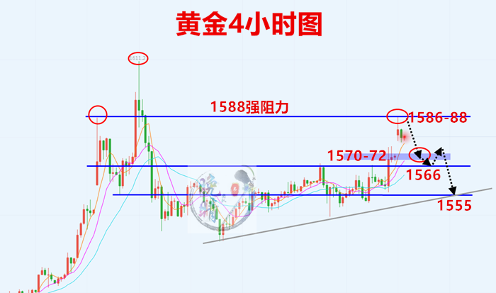 操作建议:反弹1584-86做空,止损4美金,目标看1572-1570;