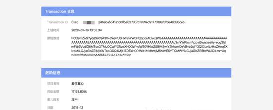 爱佑慈善基金2018年8月上线了区块链救助公示平台,技术由万向区块链提供支持。在官网“信息公开”项,可以找到“区块链”。这个页面我们可以看到区块链记录了实时的捐款情况,右侧的列表显示捐赠日期,以及捐赠金额。点击列表里面的任何一次捐助,可以看到这些捐助的区块打包信息。