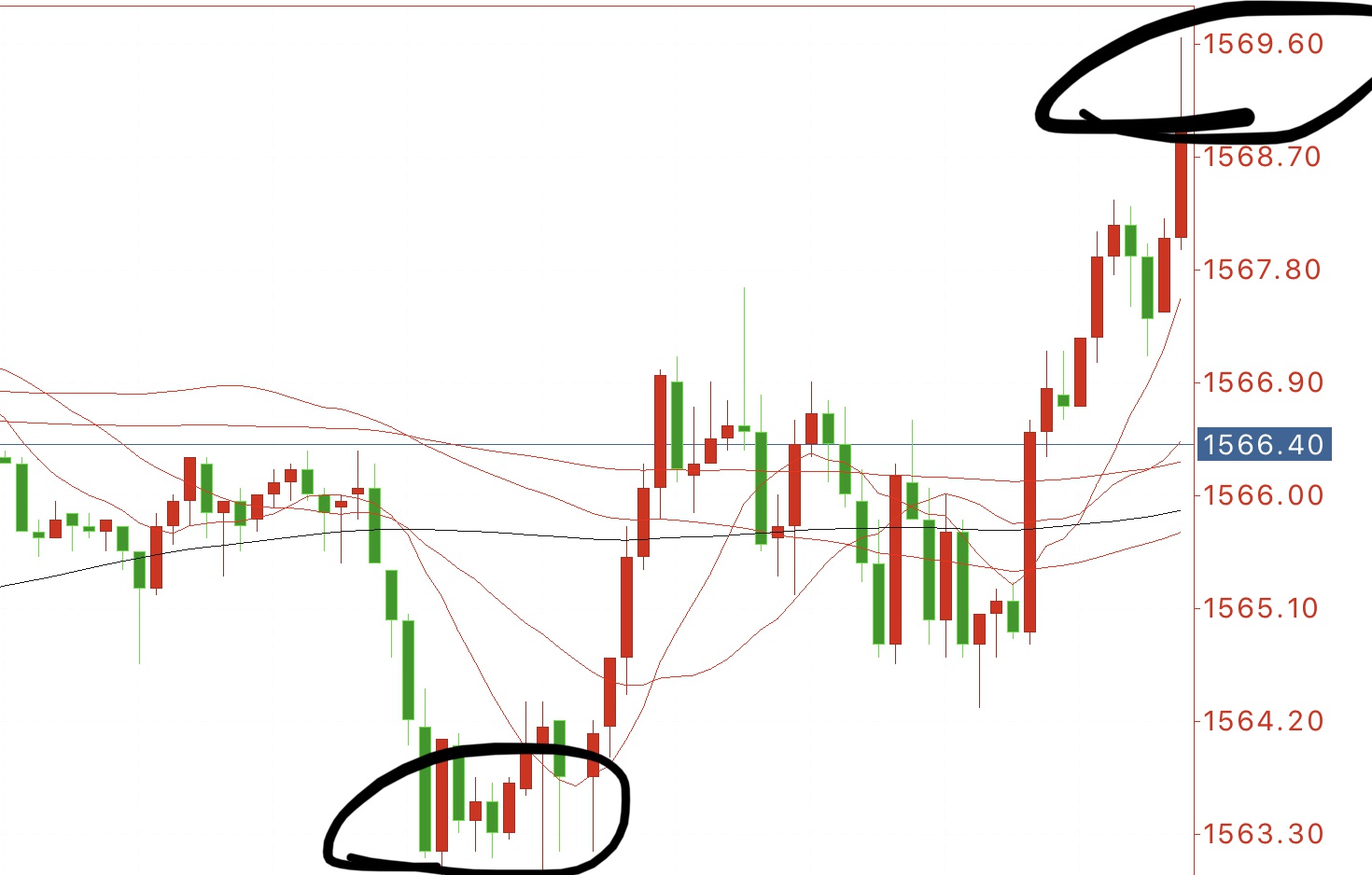 日内提示大家做多看涨,午后回撤1563附近已经接了多单,上拉1568 69以减仓一半。剩余晚上还是拿多看涨,空仓者建议1563附近继续做多。破了1571加仓看1582,若非农利空则及时保本出局观望。观察能否刺穿1555,再来选则临盘跟空。反之不破支撑就是探底的动作,还是需要做多。